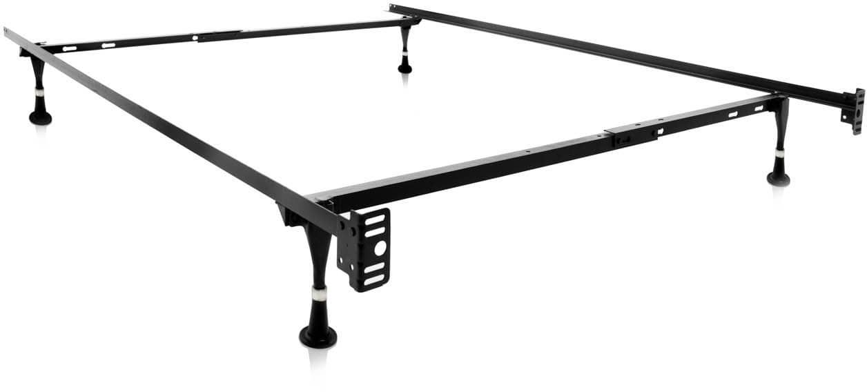 This adjustable frame provides lasting support for twin, twin XL, full and full XL beds. Solid construction and the patented Tri-Support™ brace creates optimal leg support. Frame rests on four reinforced glides or 2.5" in-line rug rollers with two locking wheels. Frame width adjusts between 38 inches and 53 inches with a length of 70 inches.