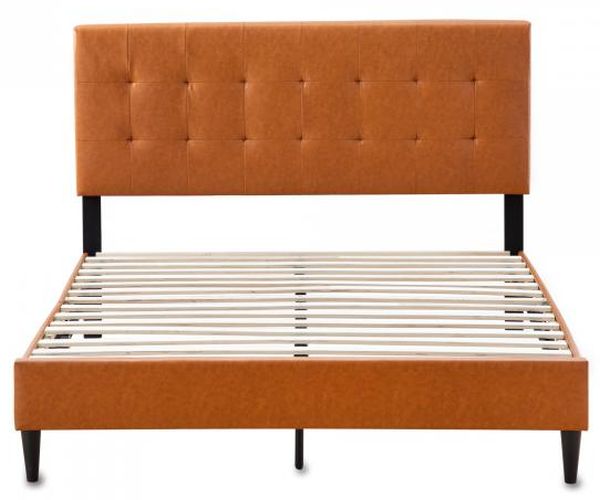 The Weekender® Jensen full platform bed features a buttonless square tufting and plush padding on the headboard.Read More